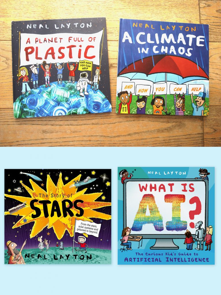 What is AI, The Story of Stars, Climate in Chaos and Planet Full of Plastic are all published by Hachette Childrens Books.